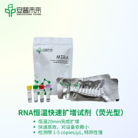 RNA 恆溫快速擴增試劑盒(基礎型)-II 使用說明書 【產品名稱】 通用名稱:RNA 恆溫快速擴增試劑盒(基礎型)-II 【包裝規格】 貨號:WLRB8207KIT 規格:48 份/盒 【原理概述】 本試劑盒基於一種常溫恆溫核酸快速擴增技術:在恆溫條件下(42 °C),特殊修飾的反轉錄酶利用特異性引物DNA和模板RNA合成 cDNA 鏈,反應體系中的重組酶、單鏈DNA 結合蛋白和 DNA 聚合酶以新合成的cDNA 鏈為模板進行快速核酸擴增反應。 適用於實驗室級別的 RNA 擴增以及其他檢測用途的 RNA 擴增使用。